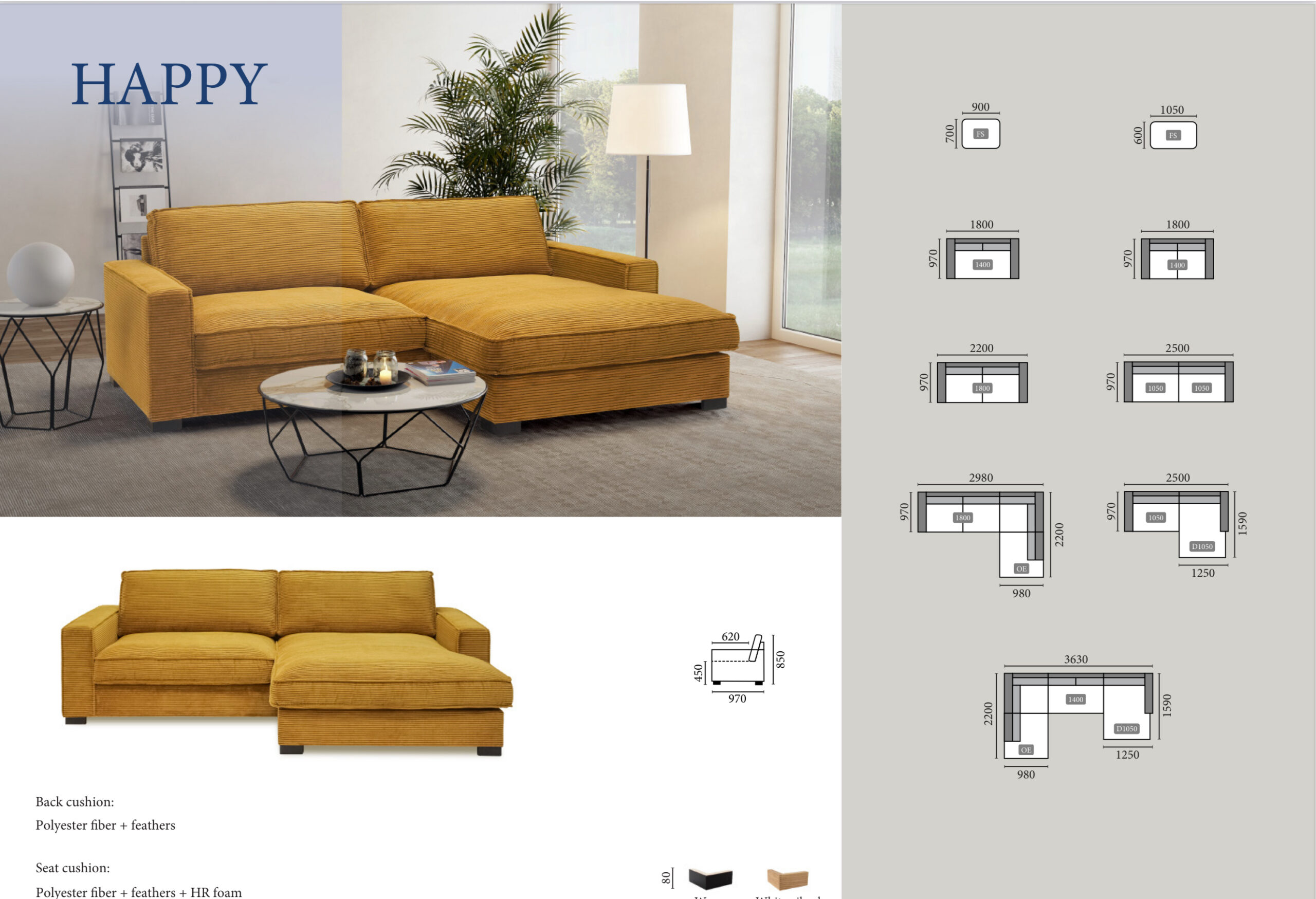Mõõdud: tagaselg 2500mm ja väljaulatuv külg 1550mm.