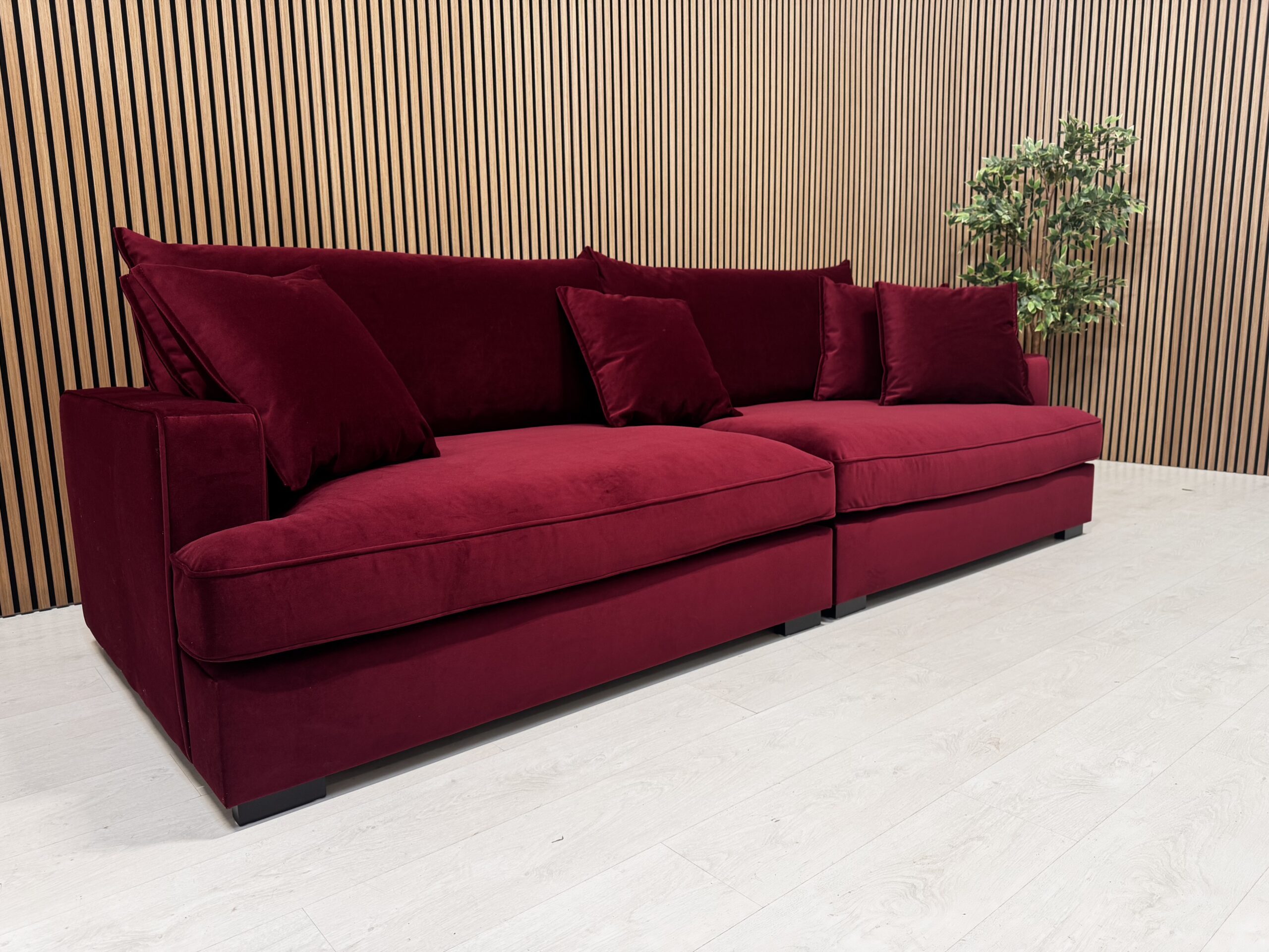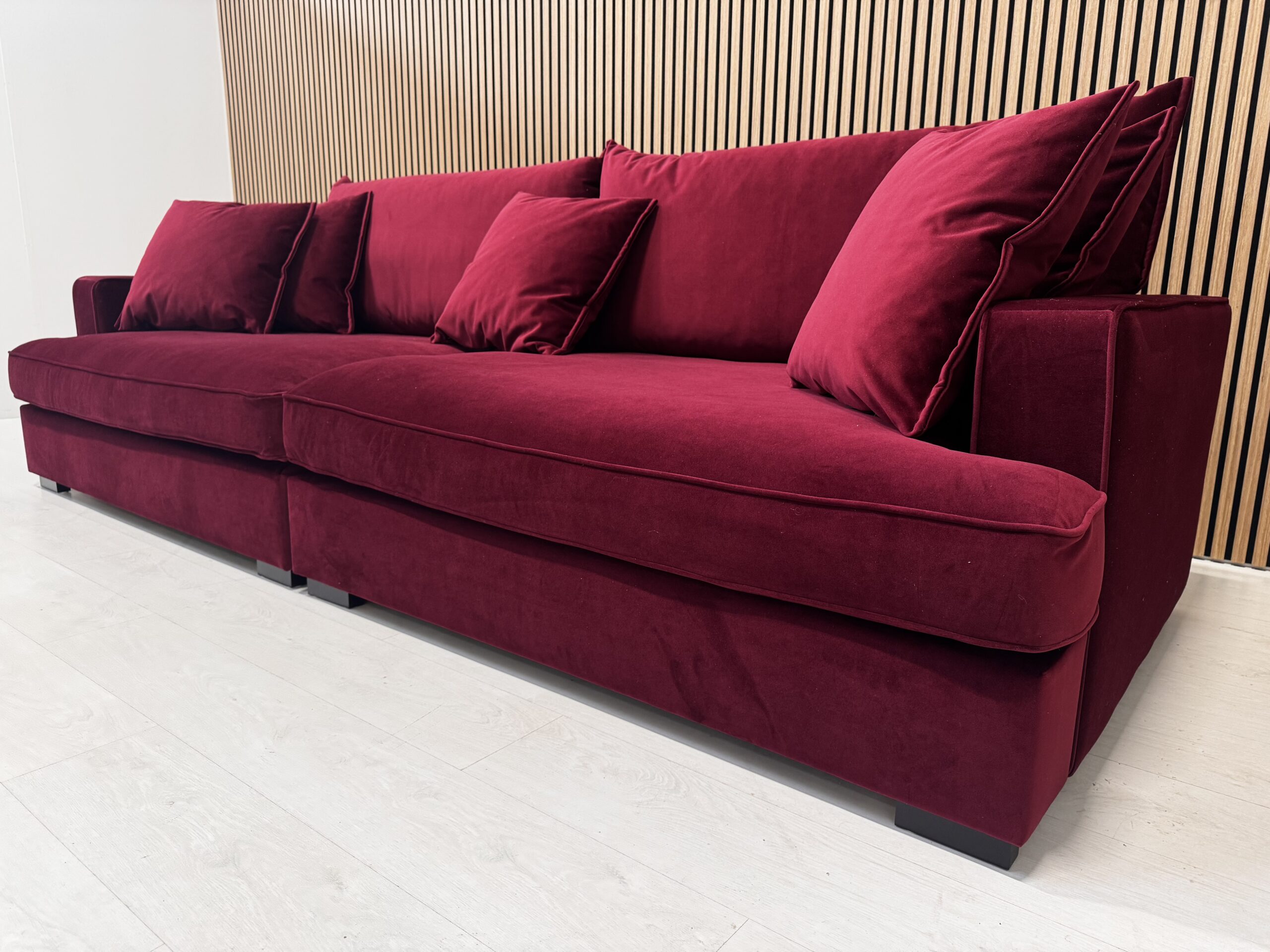 SUURE ISTUMISSÜGAVUSEGA ROSSI on valmistatud kvaliteetsetest materjalidest mugav diivan. Kangas on kõrgekvaliteetne Nevotex Megan 61 Bordeaux tooni paks samet.