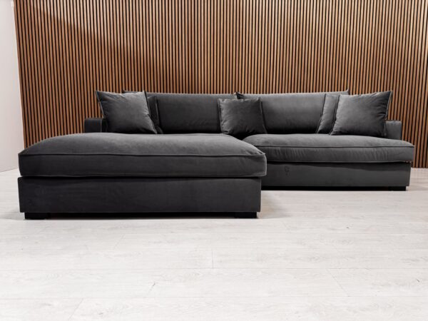 SUURE ISTUMISSÜGAVUSEGA ROSSI on mõnusalt suure istumissügavusega mooduldiivan. Kangas on vastupidav ja kvaliteetne Nevotex Megan 7 Grey